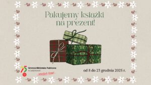 Czy wiesz, że od 8 do 23 grudnia 2025 r. możesz przynieść do każdej z lesznowolskich bibliotek książkę kupioną na prezent, a my zapakujemy ją za darmo! Przyjdź do nas, wypożycz książkę i pozwól nam pomóc Ci w przygotowaniu świątecznego upominku.