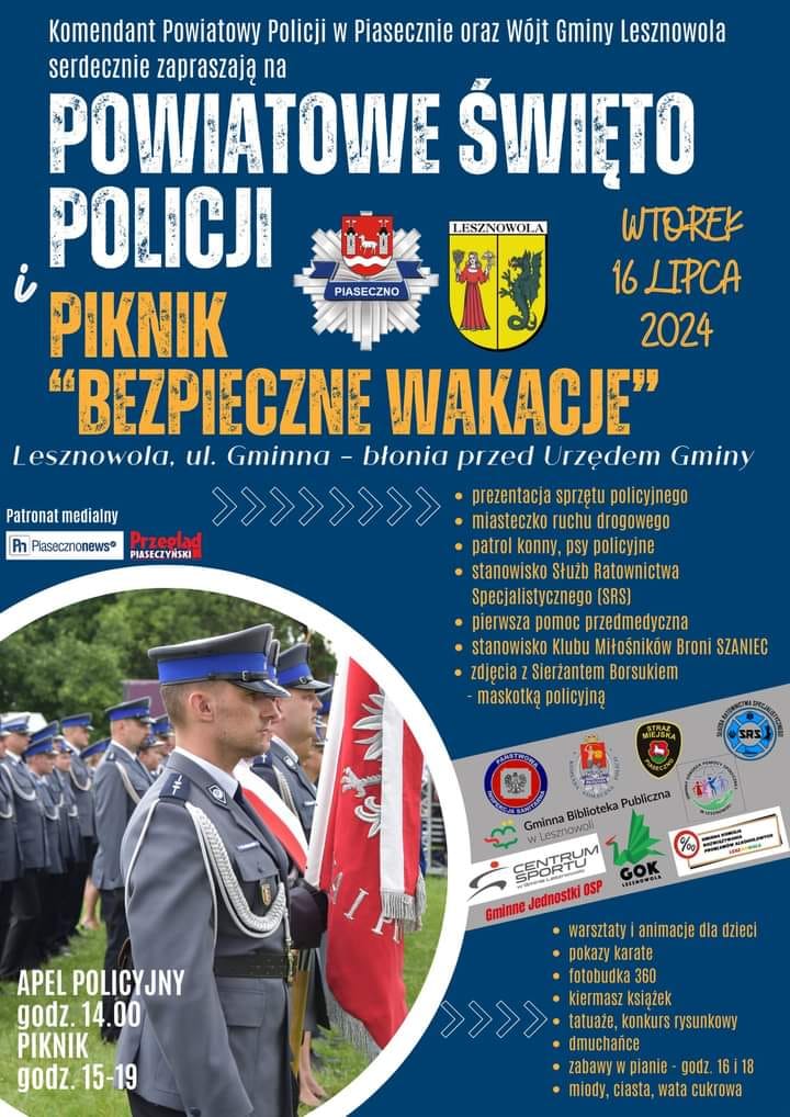 16 lipca odbył się Piknik pn Bezpieczne Wakacje, który był połączony z obchodami Powiatowego Święta Policji.