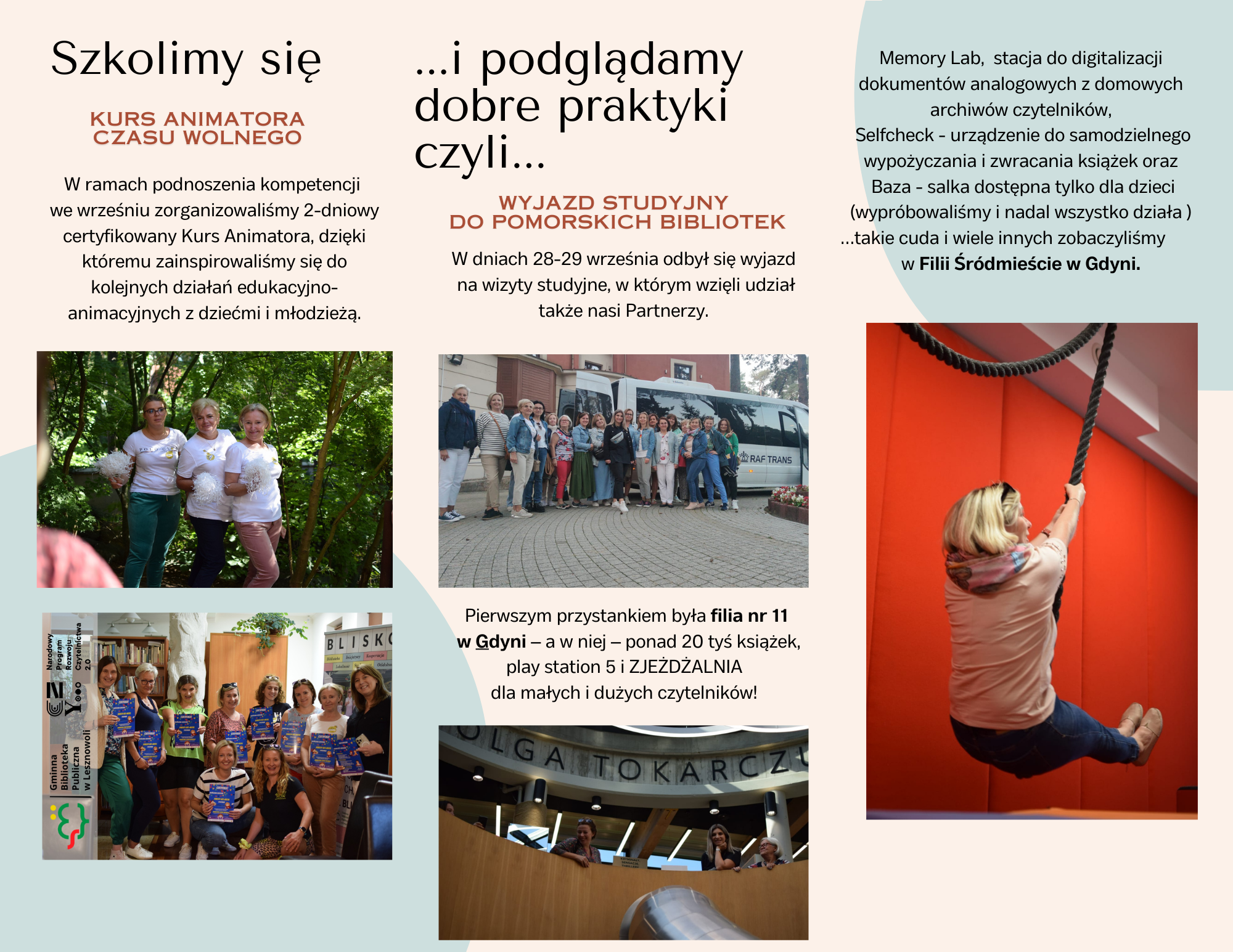 Rezultatem pierwszego roku jest nawiązanie współpracy między Biblioteką a Partnerami; nabycie przez uczestników szkoleń nowych umiejętności udokumentowanych certyfikatami uczestnictwa w kursach oraz zrealizowanie serii wydarzeń edukacyjno – animacyjnych, z których część będzie kontynuowana cyklicznie. Dzięki tym wydarzeniom zaangażowaliśmy nowe grupy odbiorców w wydarzenia biblioteczne (seniorów).