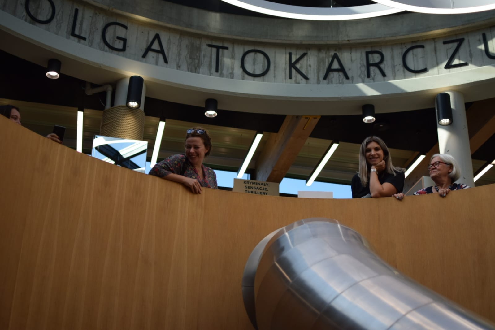 Pierwszym przystankiem była filia nr 11 w Biblioteka Gdynia – a w niej – ponad 20 tyś książek, play station 5 i ZJEŻDŻALNIA dla czytelników! Bardzo dziękujemy za miłe przyjęcie i cenne wskazówki w planowaniu przestrzeni biblioteki.