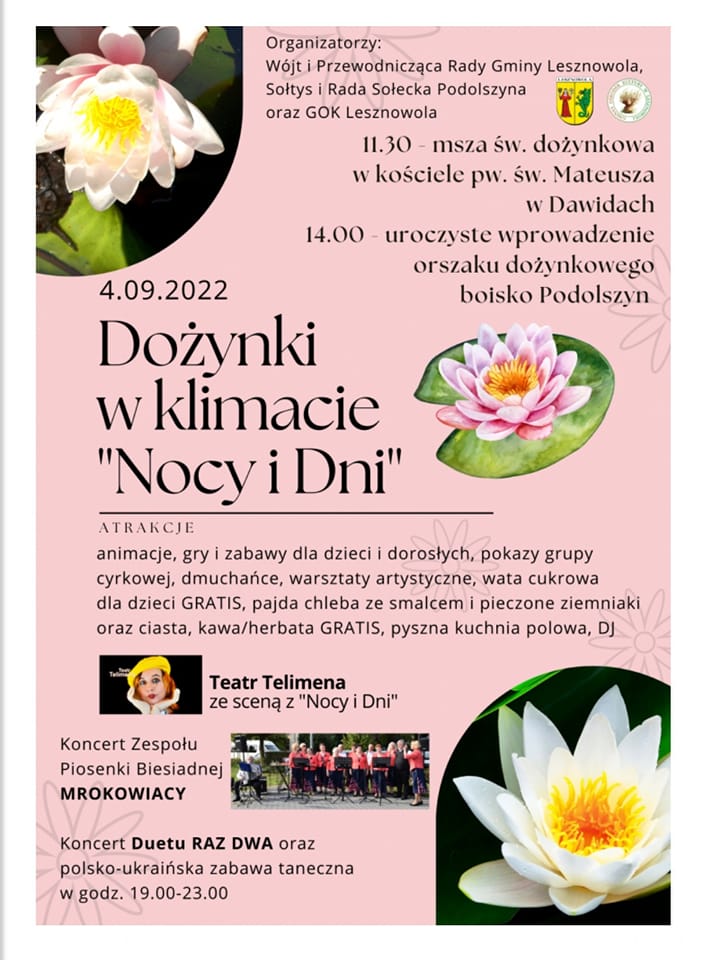 4 września przyjęliśmy zaproszenie na gminne dożynki organizowane przez Sołtys i Radę Sołecką Podolszyna.