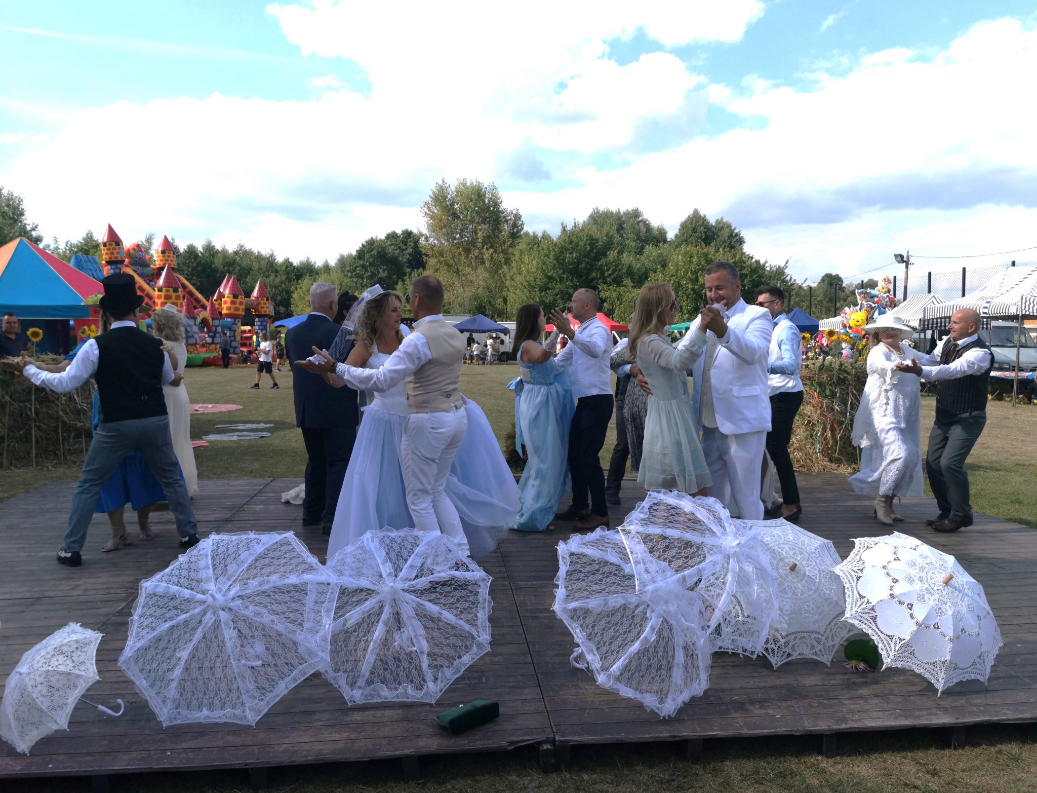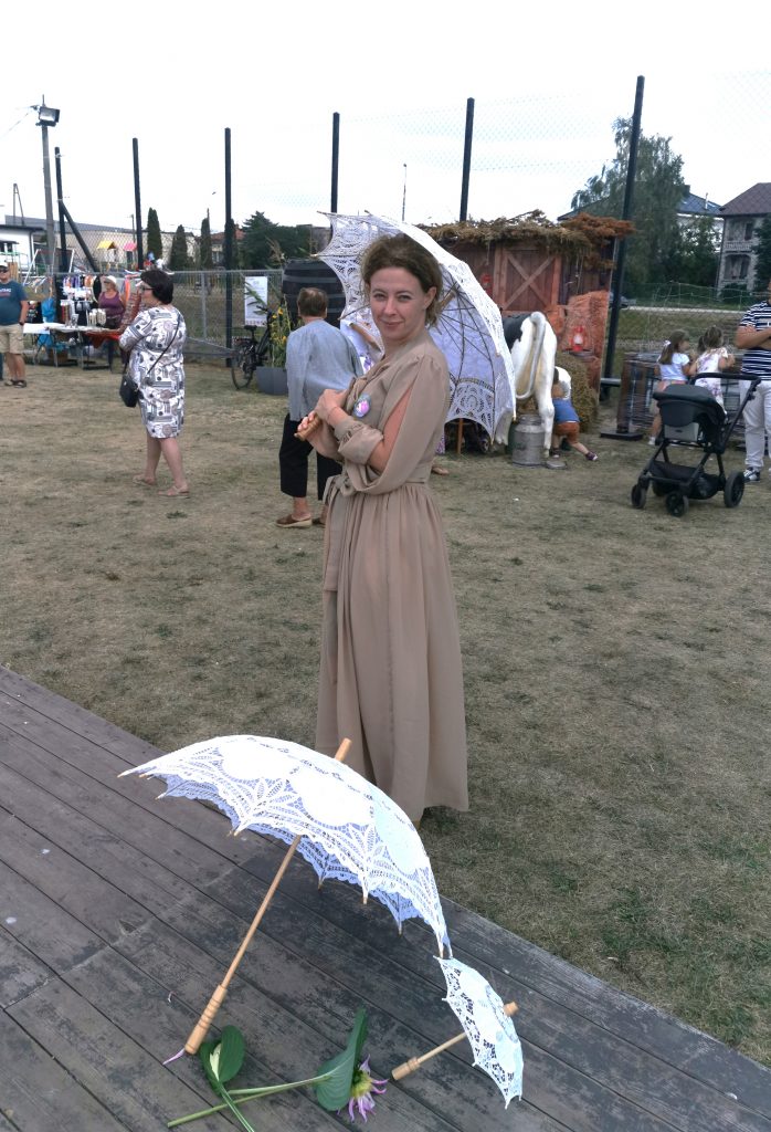 Impreza w najmniejszym sołectwie co roku gromadzi najwięcej odbiorców! Nasi bibliotekarze także dorzucili swoje cegiełki by uatrakcyjnić program dnia. Tym bardziej, że temat imprezy był bardzo LITERAKI! Organizatorzy zainspirowani twórczością Marii Dąbrowskiej i znaną ekranizacją jej flagowej powieści, postanowili zorganizować zabawę dożynkową w klimacie Nocy i dni. Po symbolicznym przekazaniu chleba przez starostów dożynkowych Wójt Gminy Lesznowola i okolicznościowych przemówieniach, odegrano romantyczną scenę nad stawem, zatańczono walca, zaś aktorki z Teatru Telimena przeczytały fragment powieści.