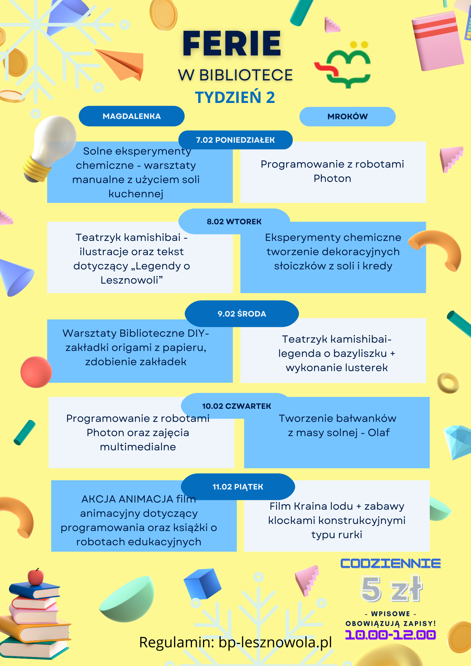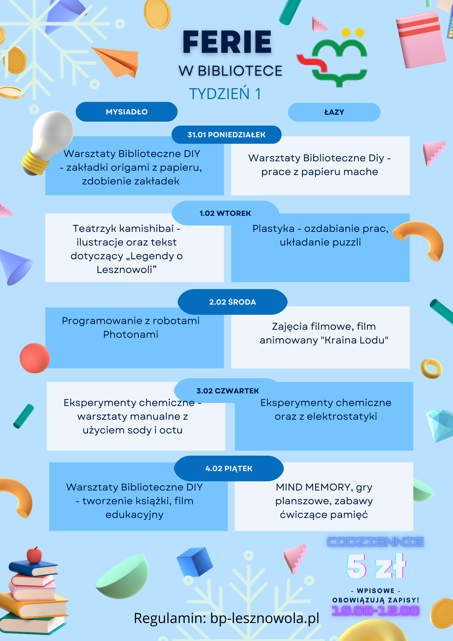 Zapraszamy dzieci na ferie w bibliotece codziennie w godz. 10.00-12.00