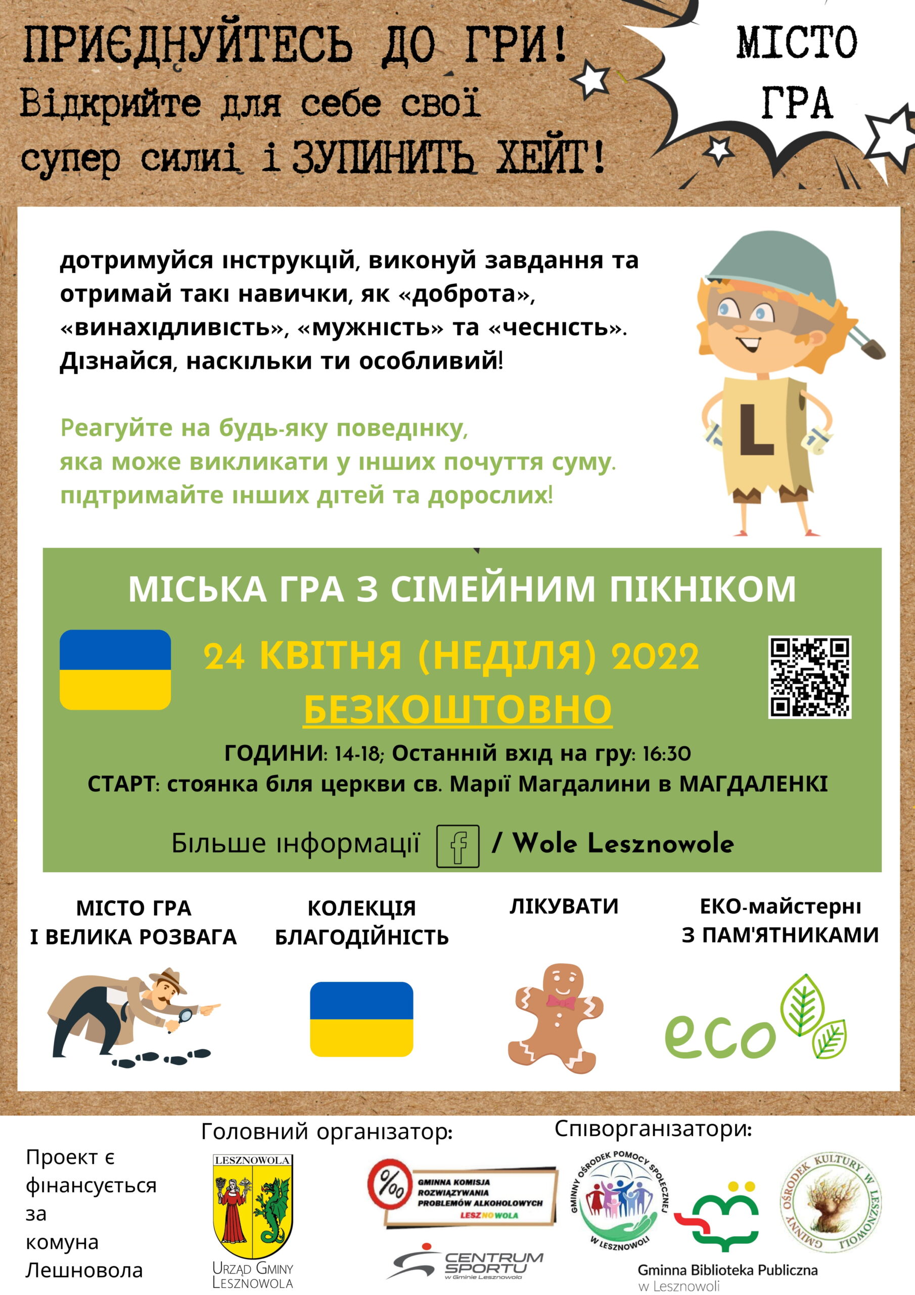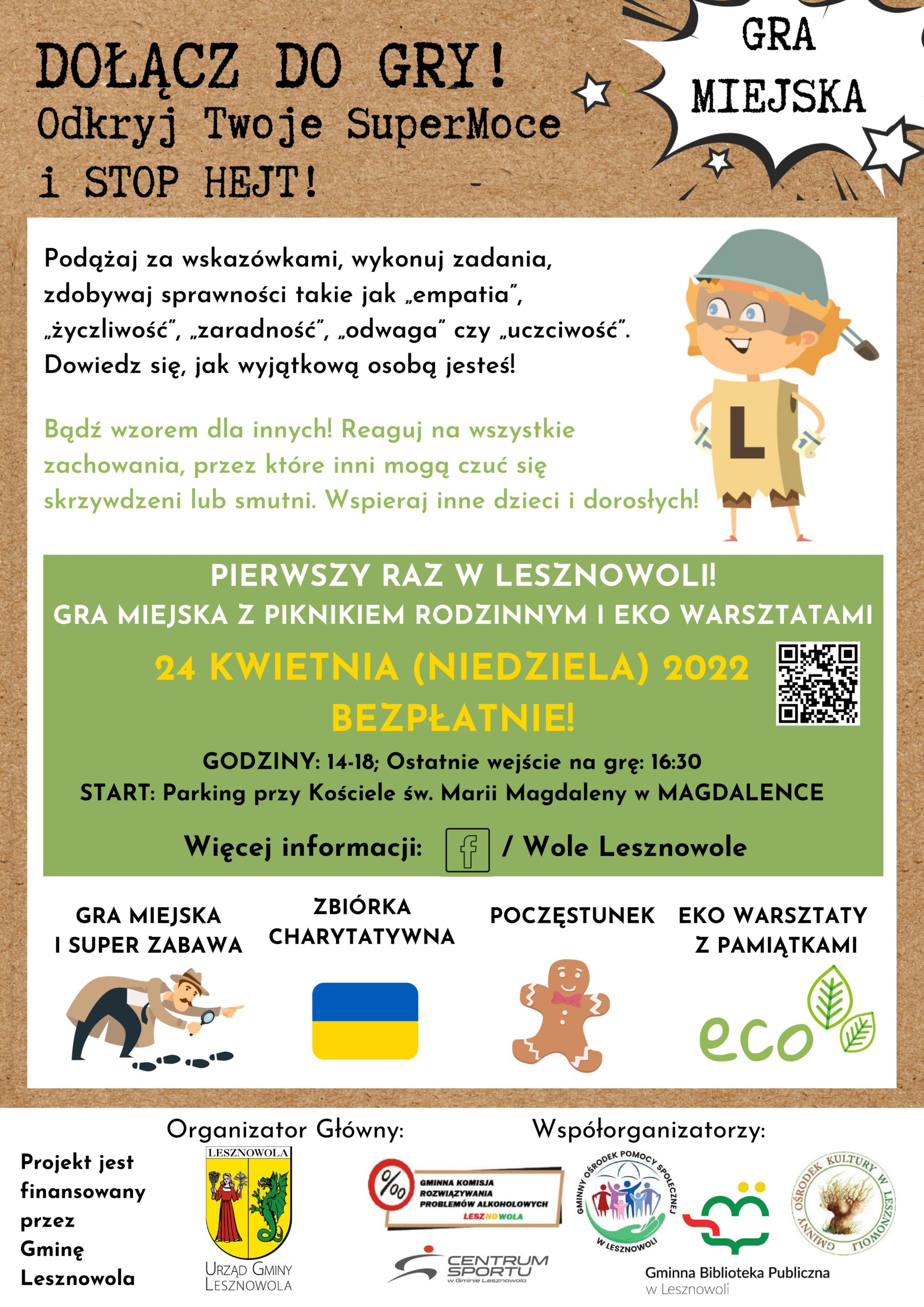 24 kwietnia 2022 r. (niedziela) w godzinach 14:00-18:00 odbędzie się bezpłatna, interaktywna gra terenowa