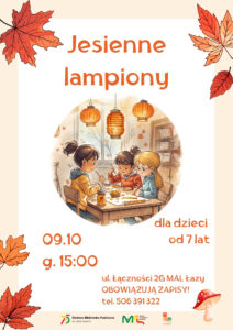 Zapraszamy dzieci od 7. roku życia na kreatywne warsztaty rękodzielnicze, podczas których stworzymy wyjątkowe jesienne lampiony! Będziemy malować, wycinać, kleić i wykorzystywać materiały z recyklingu, by nadać drugie życie przedmiotom i stworzyć magiczne dekoracje, które rozświetlą Wasze pokoje ciepłym, jesiennym blaskiem ![]()