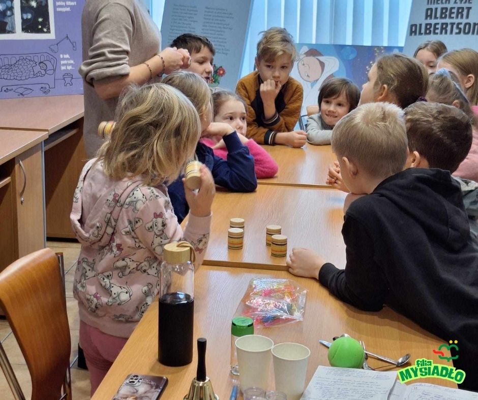 Dzieci miały okazję zapoznać się z jednym z podstawowych zmysłów poprzez różnorodność dźwięków, ich rodzajów i długości. Trenowaliśmy wrażliwość słuchową poprzez wspólne ustalanie rytmow, tworzenie sekwencji dźwiękowych oraz rozpoznawanie dźwięków z wyłączeniem zmysłu wzroku. Na koniec dzieci miały okazję zrobić swoje instrumenty o różnym natężeniu dźwięku.