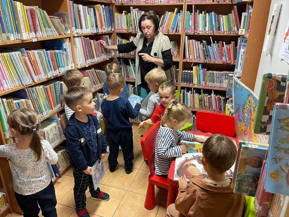 Lekcja biblioteczna w Łazach z przedszkolakami z „Fantazji”