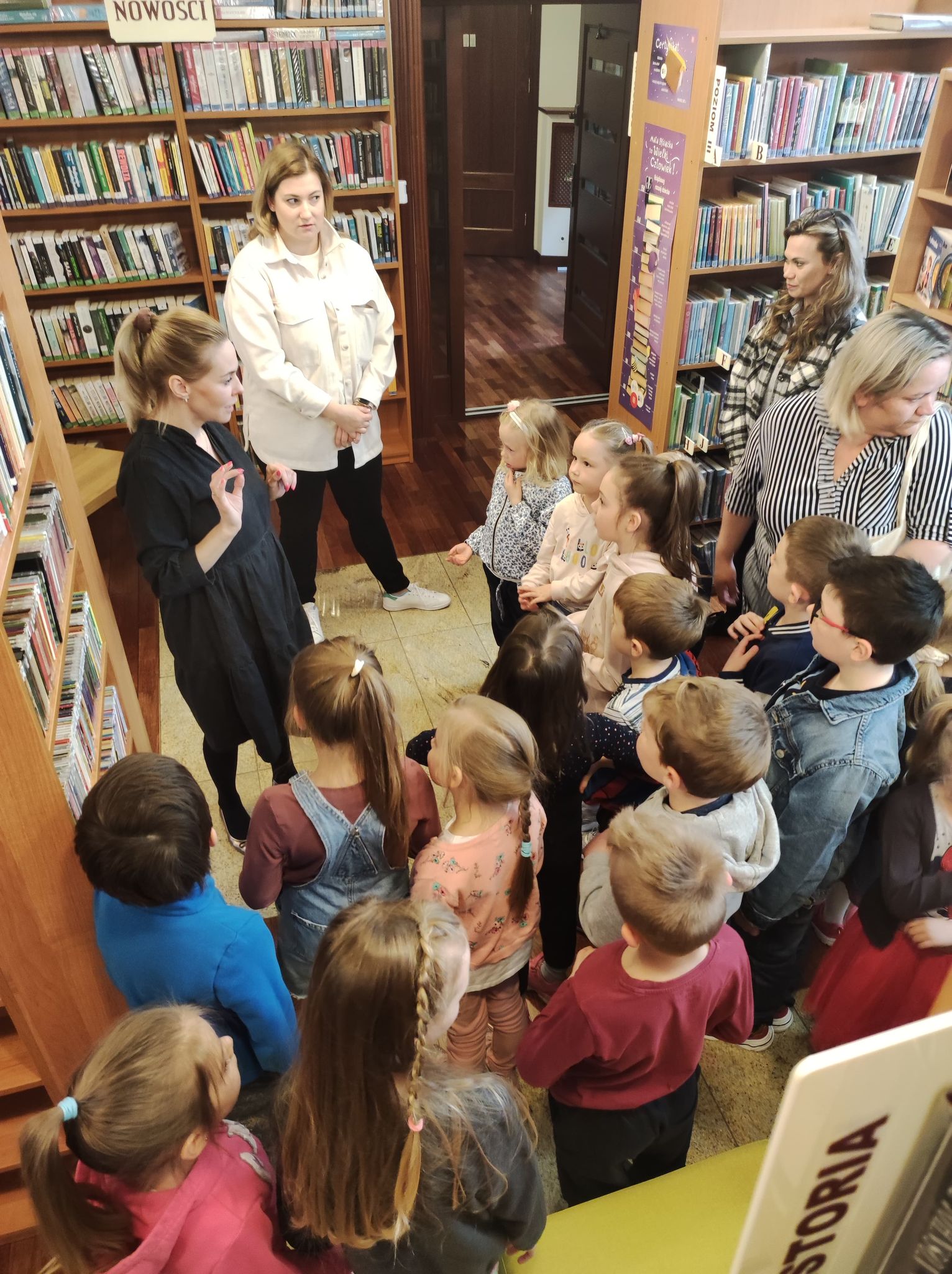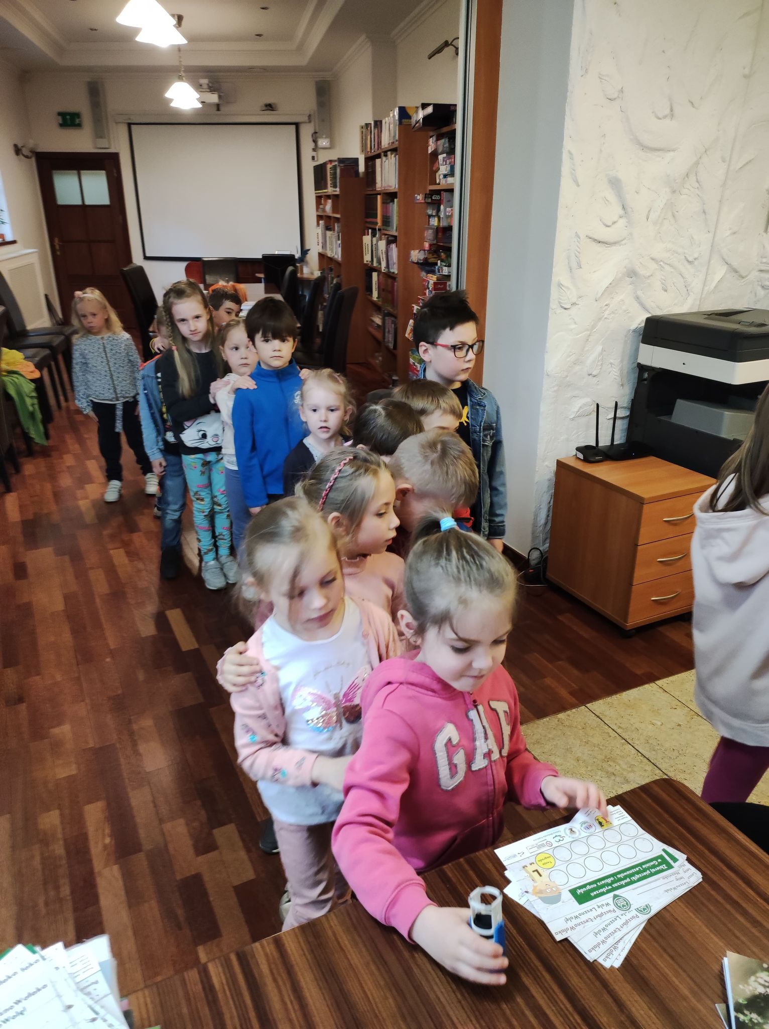 Lekcje biblioteczne dla 4 grup odbyły się pod hasłem Poznajemy Bibliotekę. Dzieci nie tylko poznały naszą placówkę, nasze panie bibliotekarki ale też budowę i funkcje książek. Na koniec każdy otrzymał Paszport LesznoWolaka żeby zbierać pieczątki!