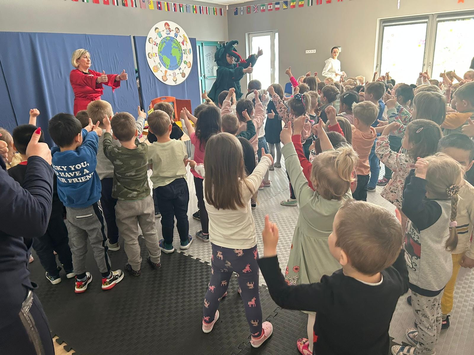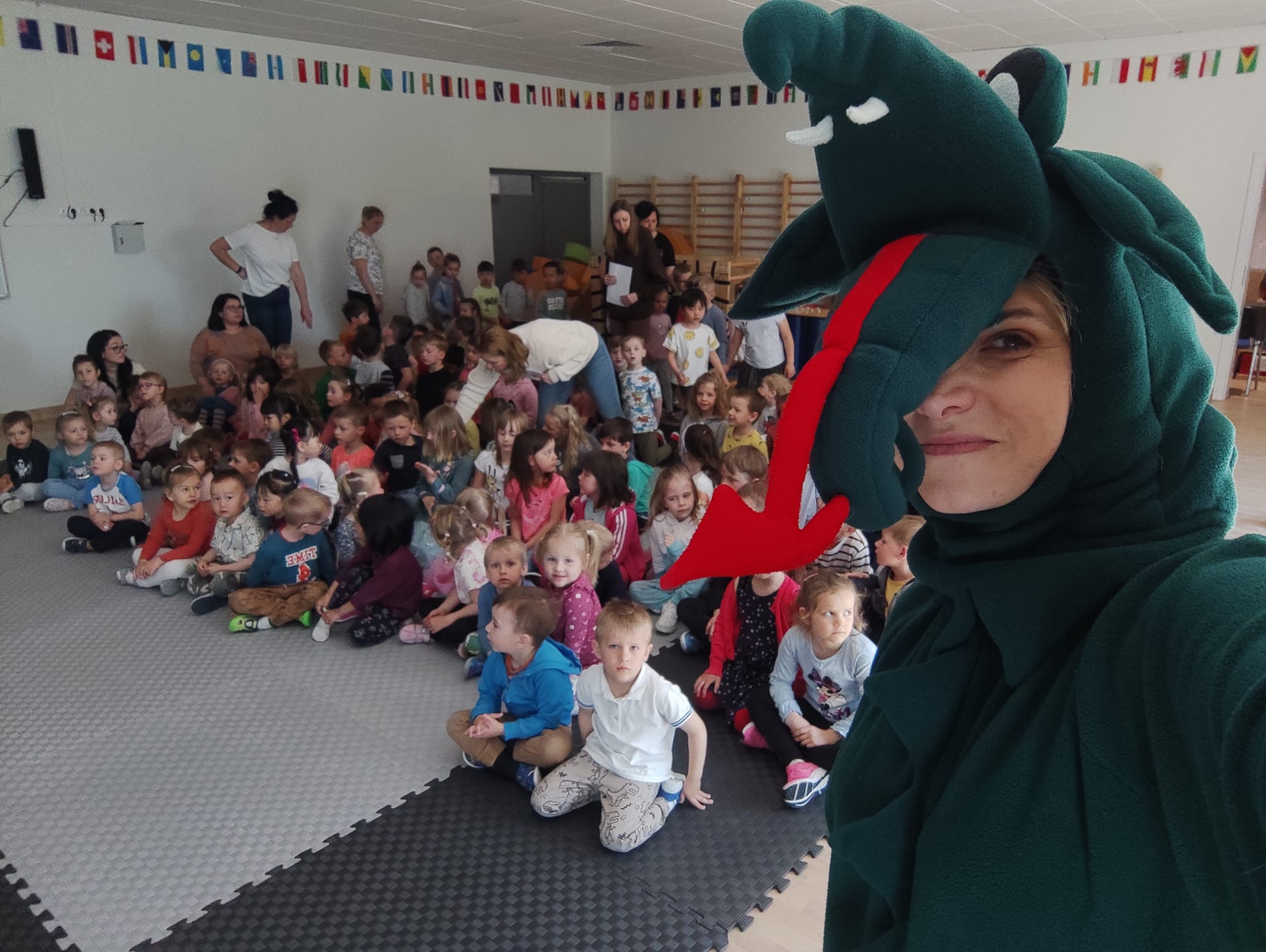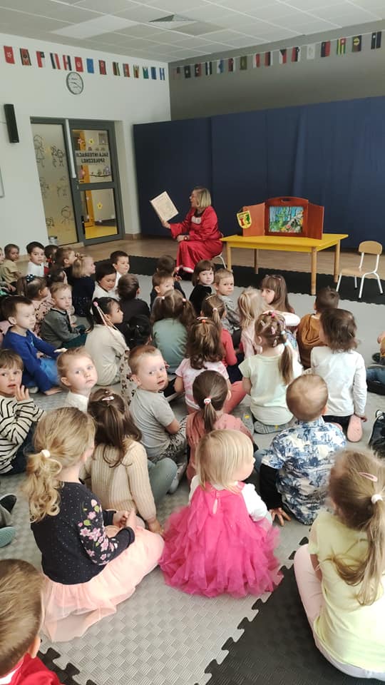 220 dzieci!Tyle uczęszcza do przedszkola w Wólce Kosowskiej i tyłu uczestników miały nasze  lekcje biblioteczne – oczywiście nie na raz.