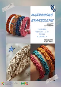 20 listopada w godz. 16:00–17:30 zapraszamy Was na warsztaty „Makramowe bransoletki” w MAL Łazy (ul. Łączności 2g).