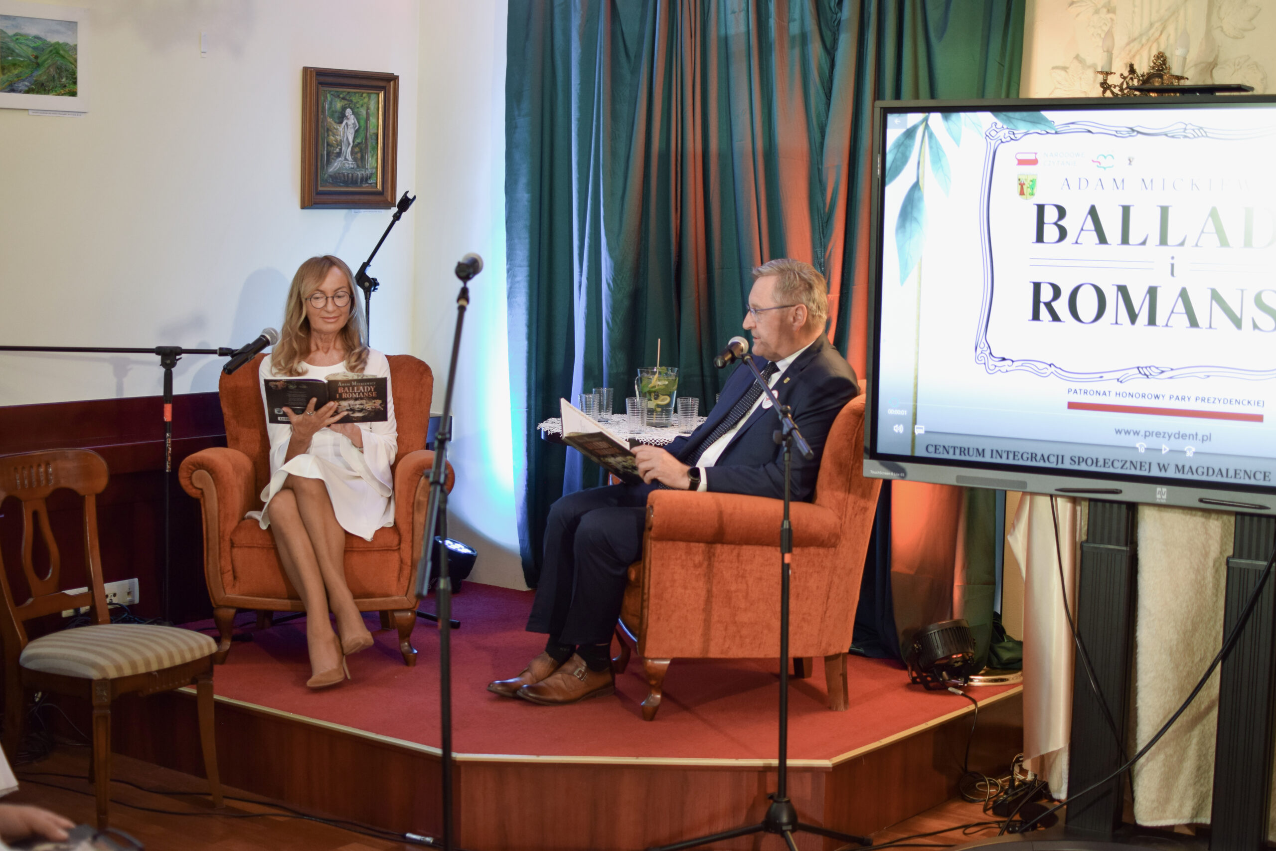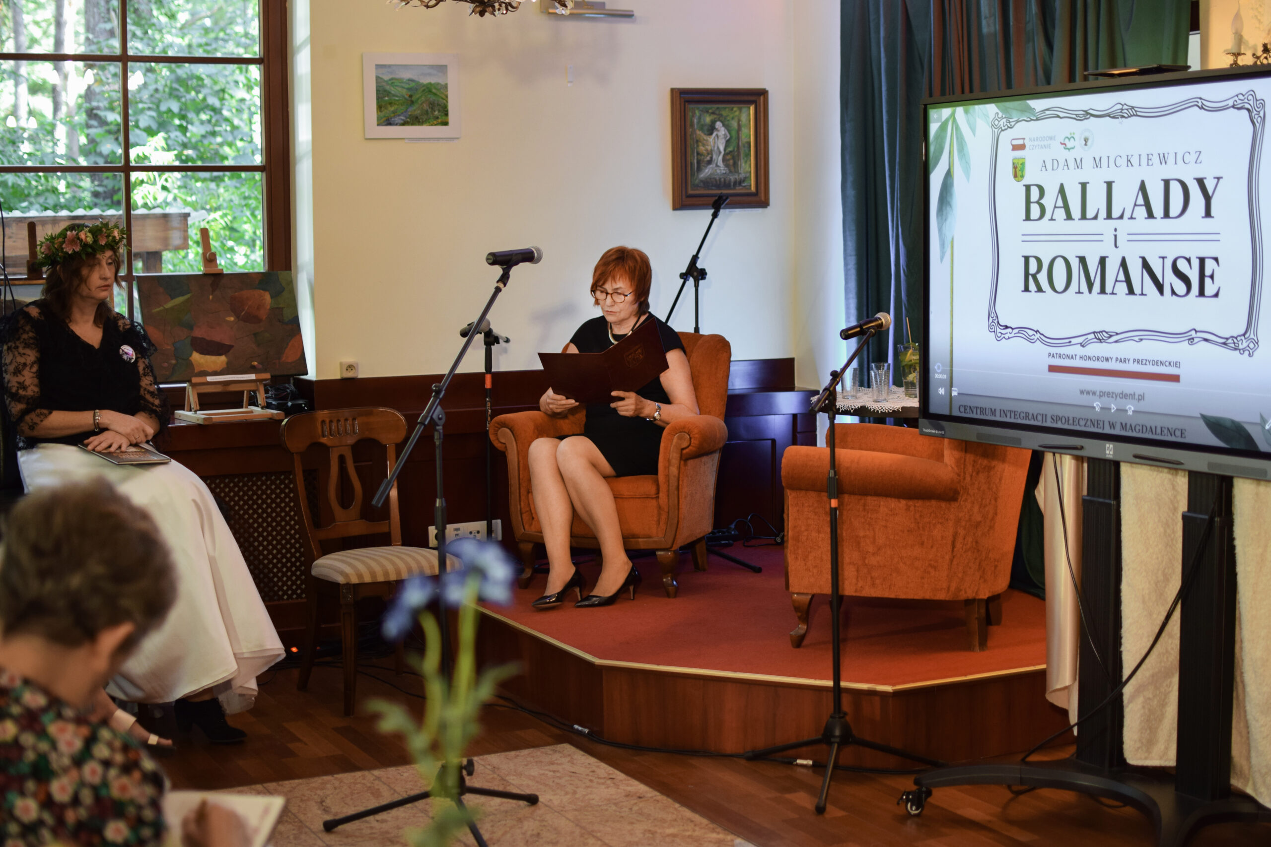 Następnie Przewodnicząca Rady Gminy Lesznowola Bożenna Korlak przeczytała List od Prezydenta RP, w którym Prezydent podkreślił, że wydane dwieście lat temu w Wilnie Ballady i romanse Adama Mickiewicza to zbiór poezji, który zapoczątkował w Polsce romantyzm. Młodzieńcze, a jednocześnie bardzo dojrzałe wiersze okazały się przełomowe i dzisiaj trudno wyobrazić sobie bez nich dalsze dzieje naszej literatury. Romantyczność, Świtezianka, Powrót taty, Pani Twardowska i inne niezapomniane utwory tego cyklu od dziesiątków lat łączą pokolenia Polaków. Zachwycają wyjątkową aurą, niezrównanymi opisami natury i mądrą prawdą, że świat musi być sprawiedliwy, dobro nagrodzone, a zło ukarane. Niezwykła wrażliwość, wspaniałe wyczucie języka i wyobraźnia genialnego poety sprawiły, że Ballady i romanse są esencją polskiego romantyzmu.