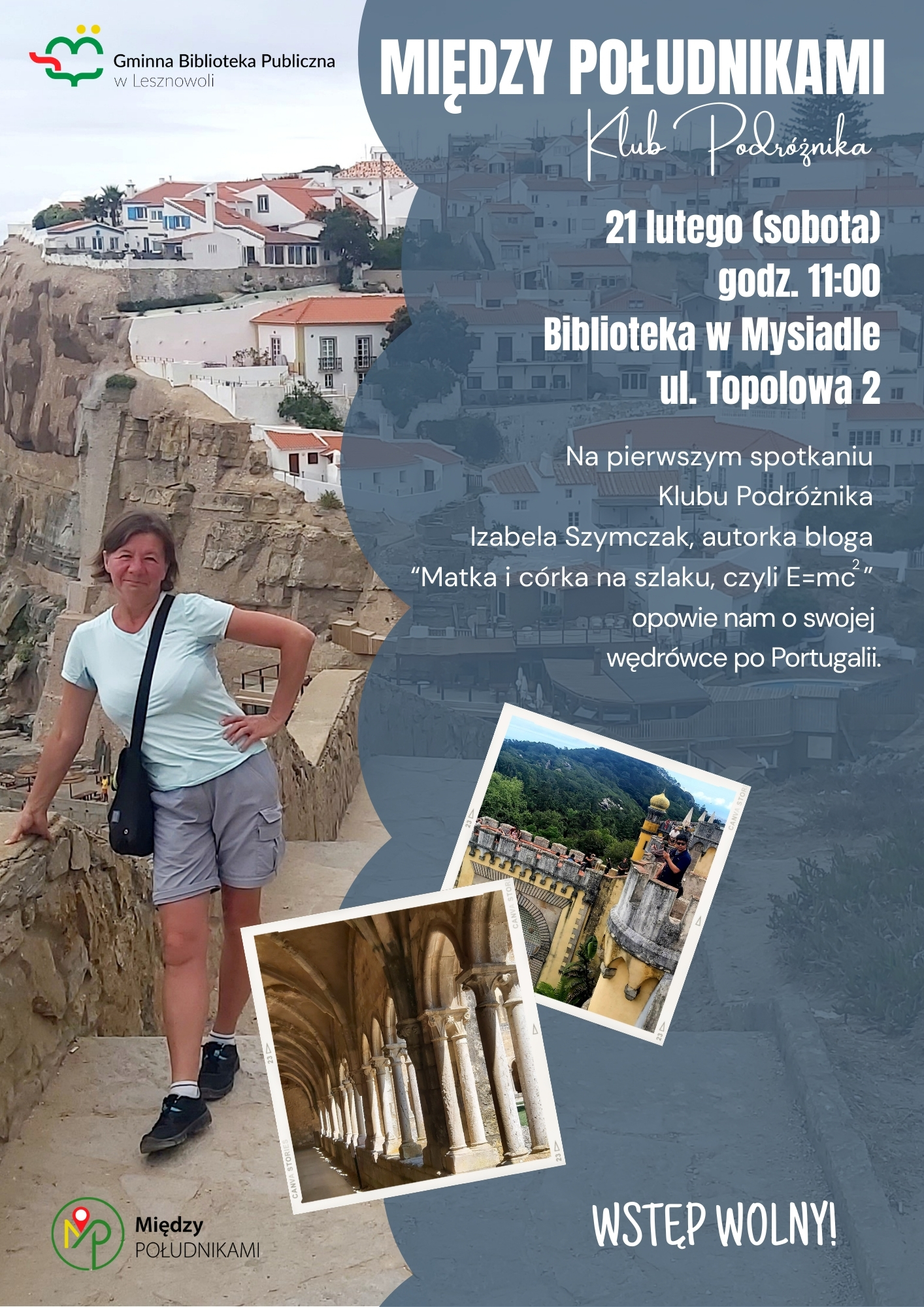 Serdecznie zapraszamy na pierwsze spotkanie Klubu Podróżnika „Między Południkami” w Gminnej Bibliotece Publicznej w Lesznowoli, które odbędzie się w sobotę, 21 lutego 2026 roku o godzinie 11:00 w Bibliotece w Mysiadle (ul. Topolowa 2).