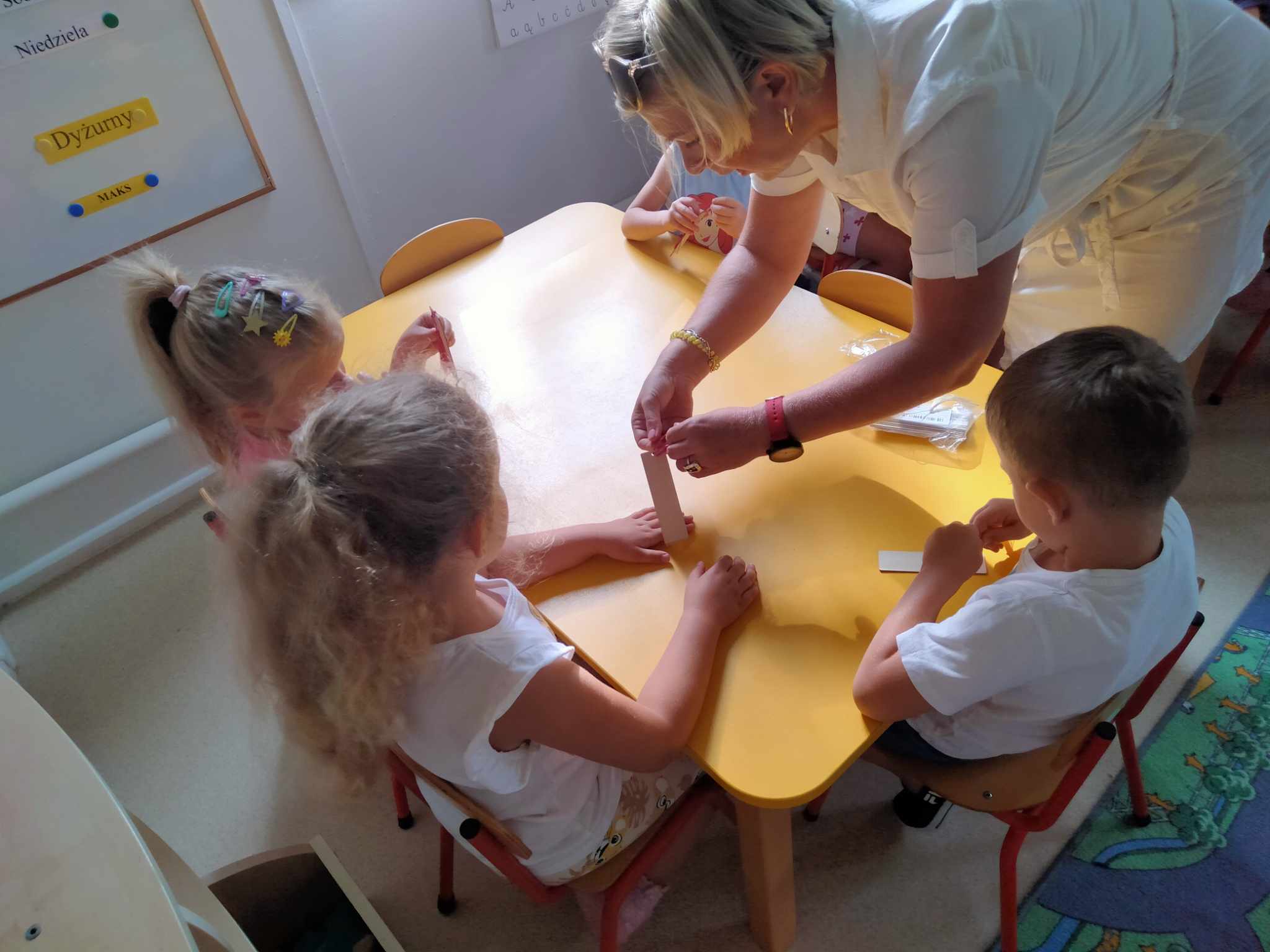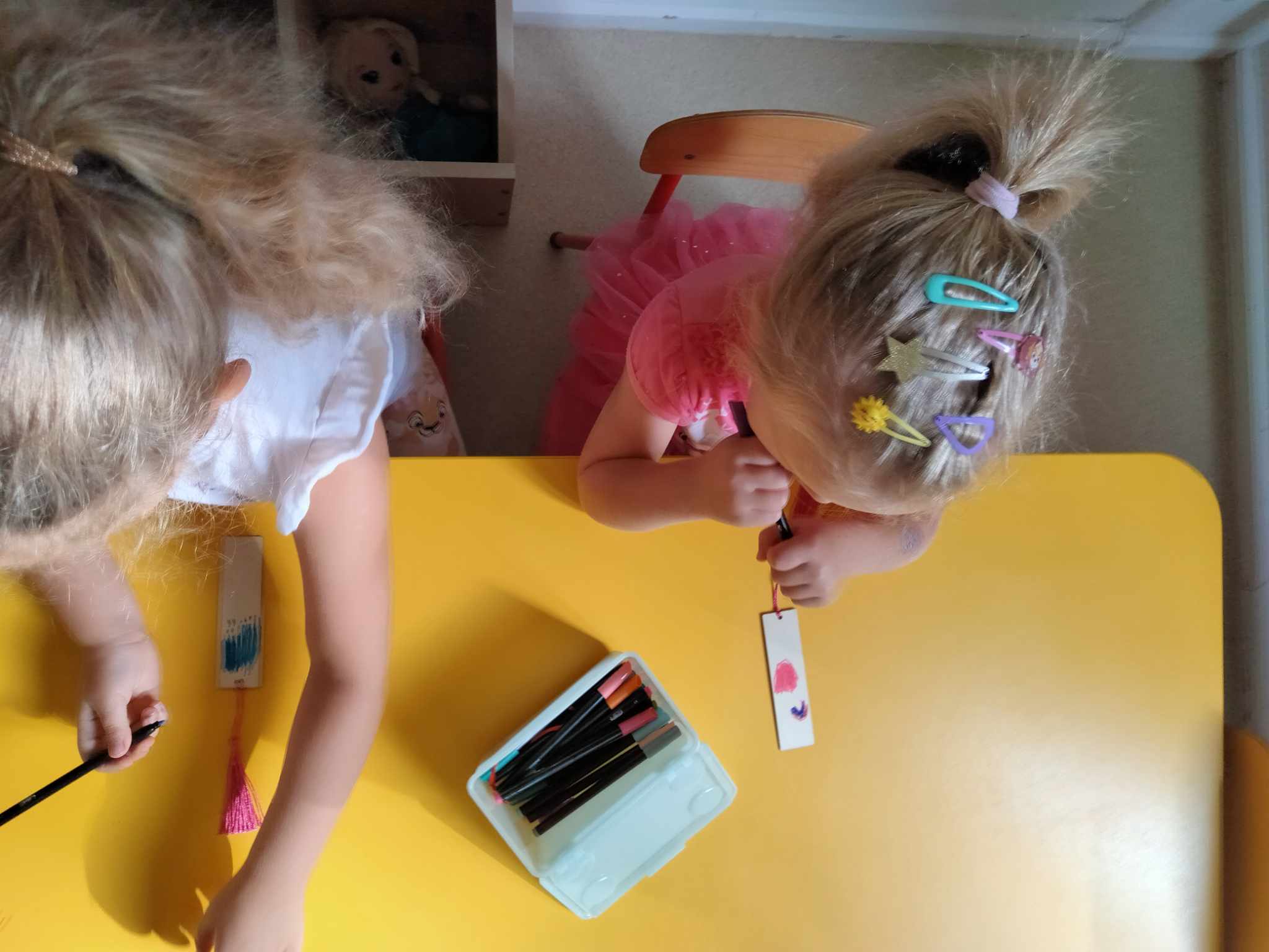 Dzieci mogły same ozdobić drewniane i kartonowe zakładki a także przygotować oryginalne origami. Oczywiście wszystkie prace odłożyli na swoje półeczki by zabrać do domu i korzystać z zakładek czytając z rodzicami książki z biblioteki. Tak połączyliśmy przyjemne z pożytecznym!