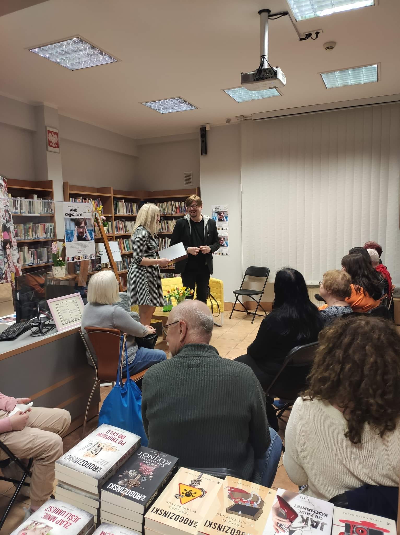Każdy miał możliwość otrzymać autograf i zamienić kilka słów z autorem. To było jedno z najbardziej inspirujących spotkań w naszej bibliotece. Jesteśmy ogromnie wdzięczni pisarzowi Alek Rogoziński za przyjęcie zaproszenia od dyrektor GBP w Lesznowoli pani Magdaleny Barańskiej i mamy nadzieję, że za jakiś czas spotkamy się ponownie.