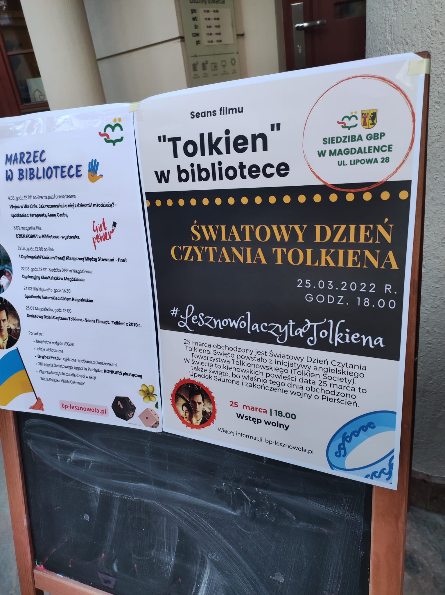 Z okazji Światowego Dnia Czytania Tolkiena zaprosiliśmy naszych Czytelników w piątkowy wieczór 25 marca do sali integracji społecznej w Magdalence w na seans filmu biograficznego o Autorze.
