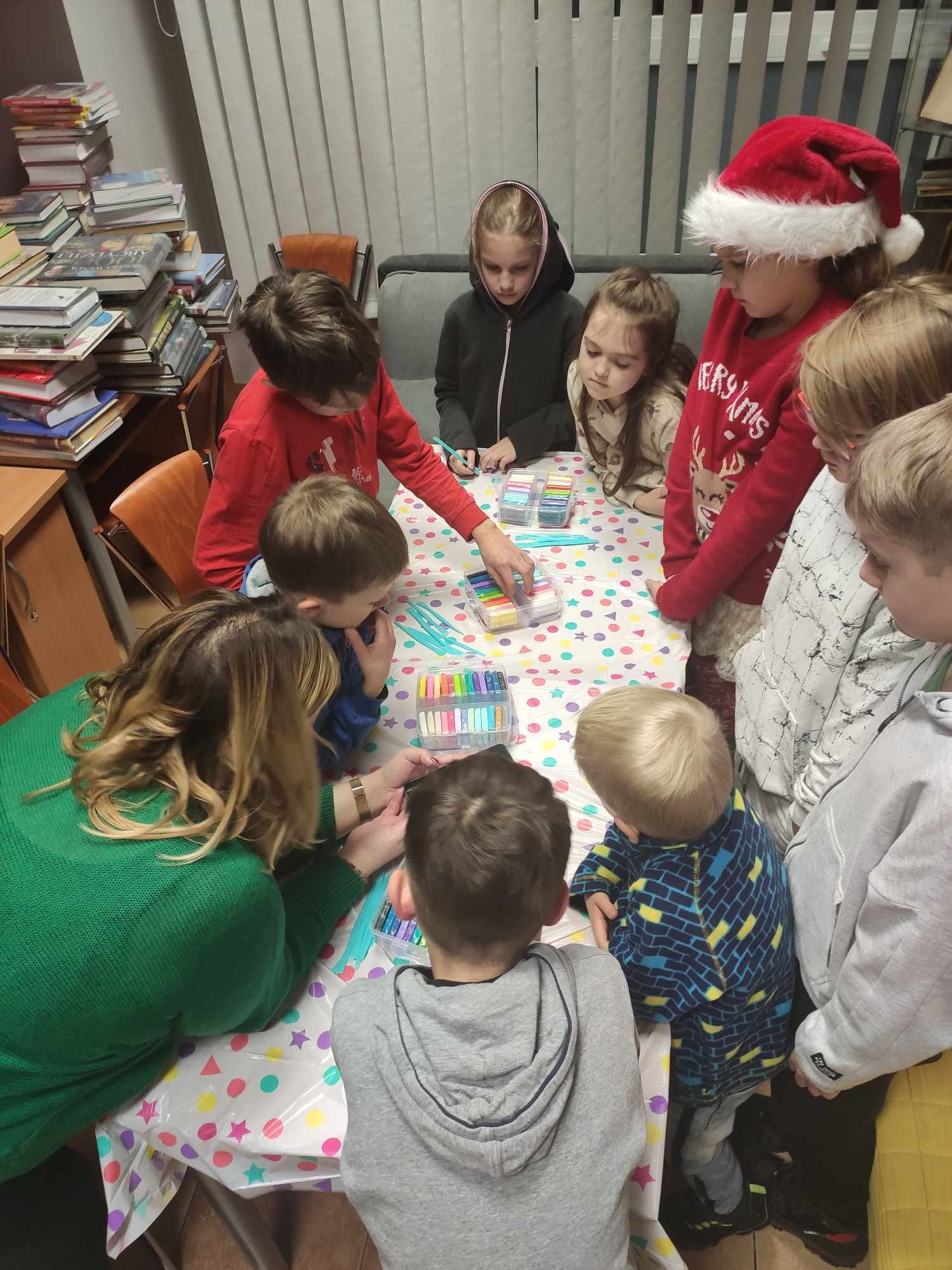 Familijne Warsztaty Świąteczne Post author:Telimena Post published:5 grudnia 2023 Post category:Wydarzenia Zaprosiliśmy Rodziców z dziećmi na świąteczne warsztaty familijne w bibliotece w Mysiadle i w Magdalence. Powstało bardzo dużo ozdób (dzieci) mieszanek herbat (dorośli). Spotkanie sfinansowano ze środków.Fundacji Ukraiński Dom . Może ci się spodobać również Warsztaty dla kobiet 7 stycznia 2019 Lekcja biblioteczna w Przedszkolu w Jastrzębcu 11 października 2021 Kalendarz wydarzeń grudniowych 5 grudnia 2023